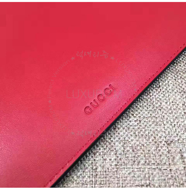 소프트 GG 수프림 및 히비스커스 레드 가죽 트리밍 앵그리 캣 프린트 탑 지퍼 잠금장치.