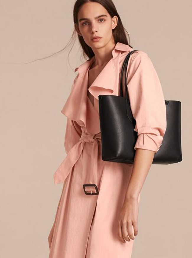 토트 백. 주머니 없는 양면 디자인으로 클래식한 레더 백 룩을 연출할 수