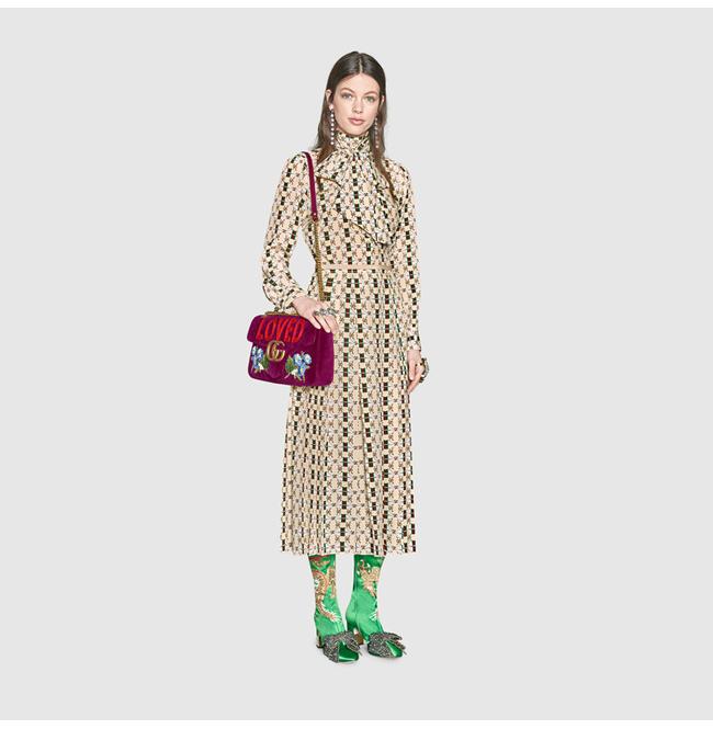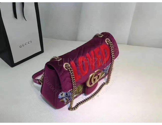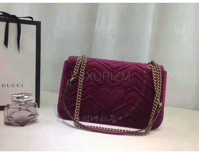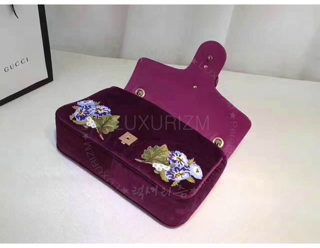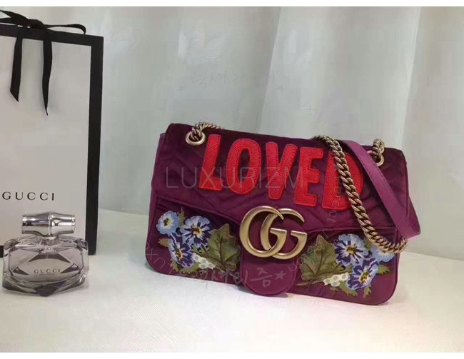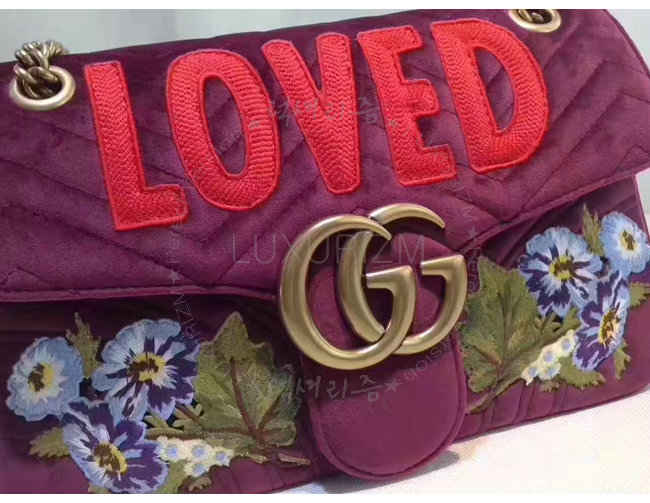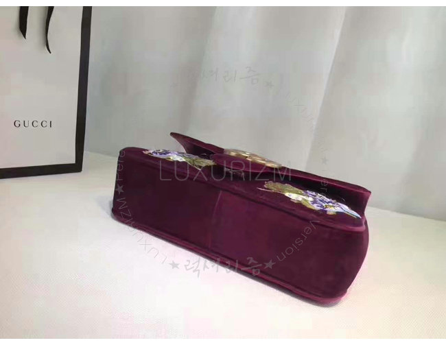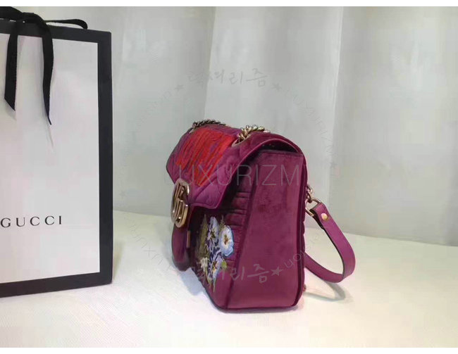[스폐셜오더]GUCCI-443496 5668 구찌 GG Marmont 벨벳 자수 디테일 미디엄 체인 숄더백 보르도
