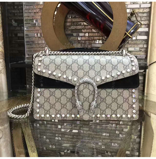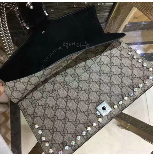 [스페셜오더]GUCCI-400249 8144 구찌 GG 수프림 크리스탈 트리밍 스몰 체인 숄더백 블랙