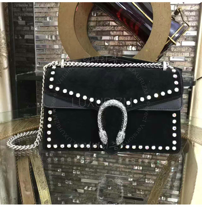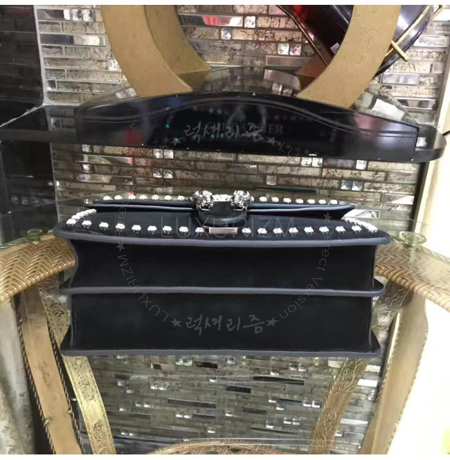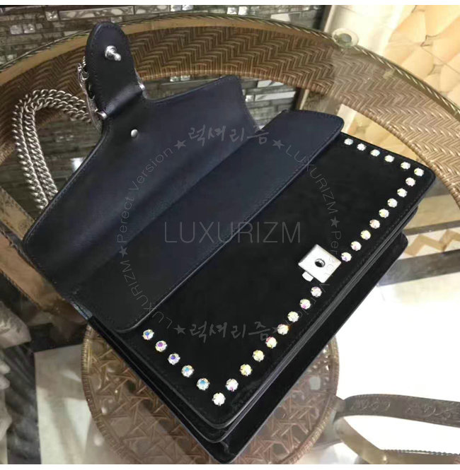 [스페셜오더]GUCCI-400249 8144 구찌 스웨이드 가죽 크리스탈 트리밍 스몰 체인 숄더백 블랙