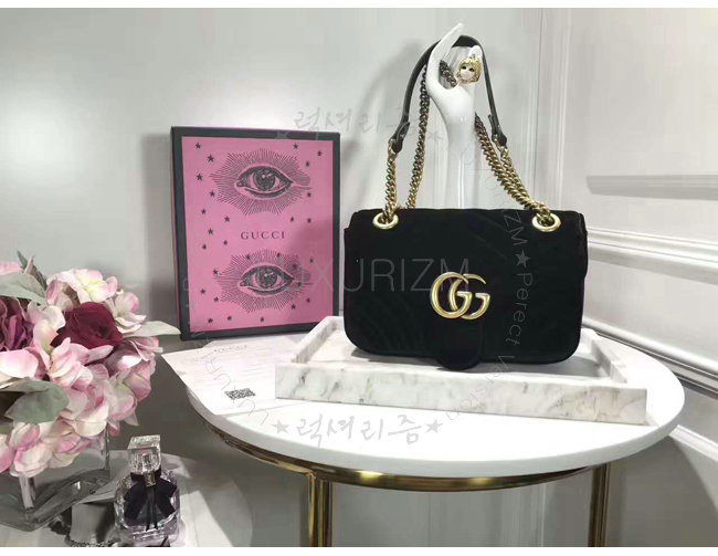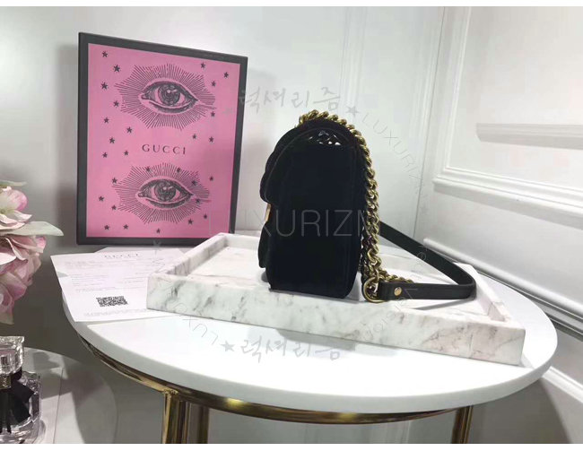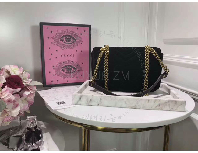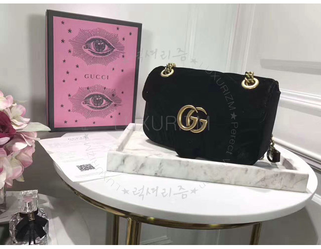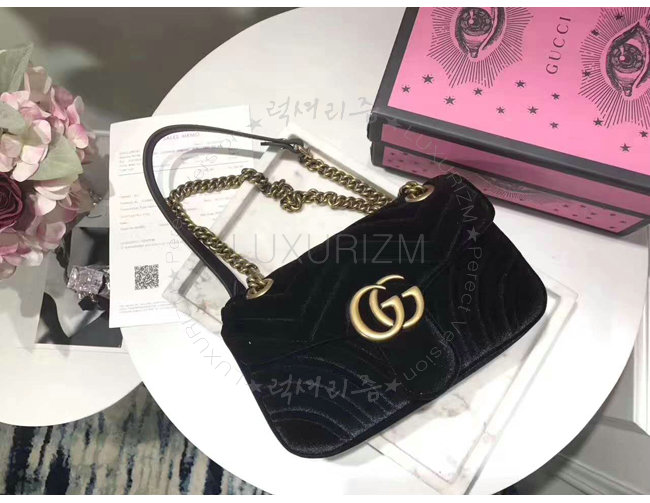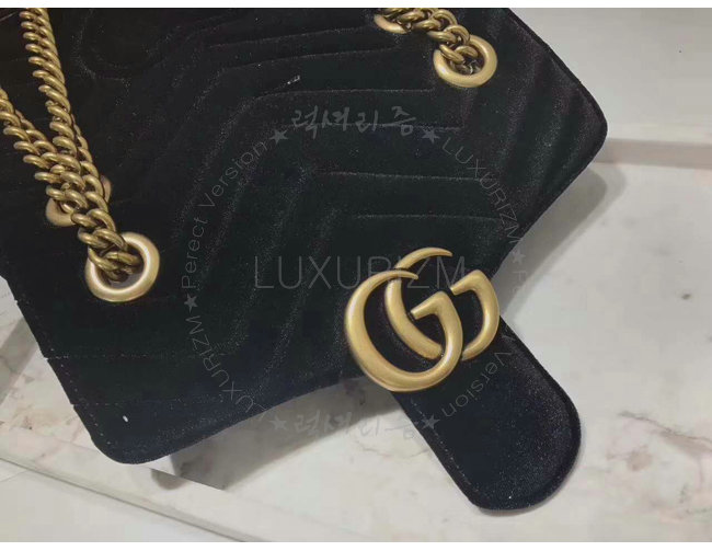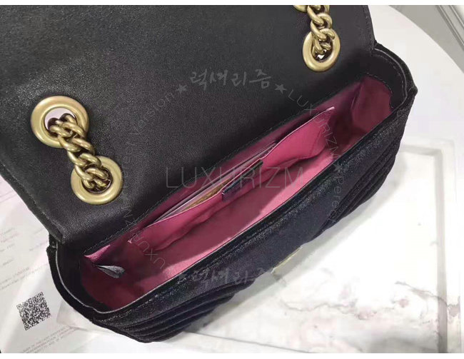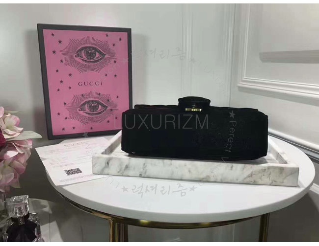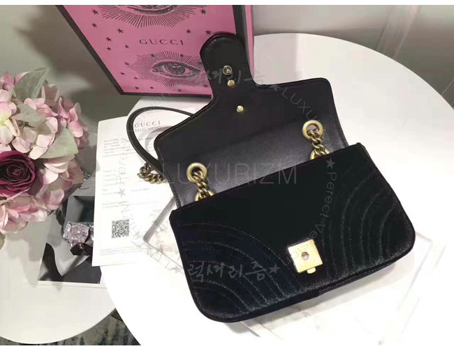 [스페셜오더]GUCCI-446744 1000 구찌 GG Marmont 마틀라세 미니 벨벳 숄더백 페트롤 블랙