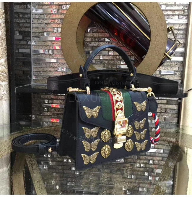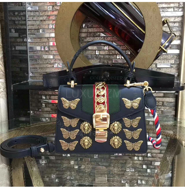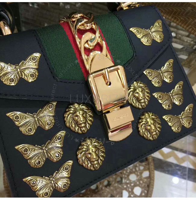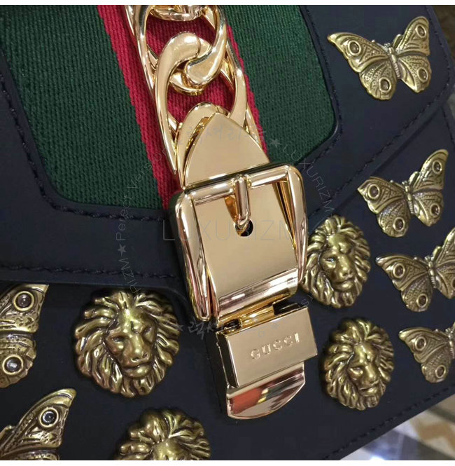 [스페셜오더]GUCCI-470270 8015 구찌 Sylvie 실비 가죽 애니멀 스터드 미니 숄더 백 블랙