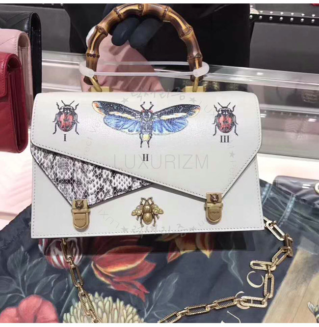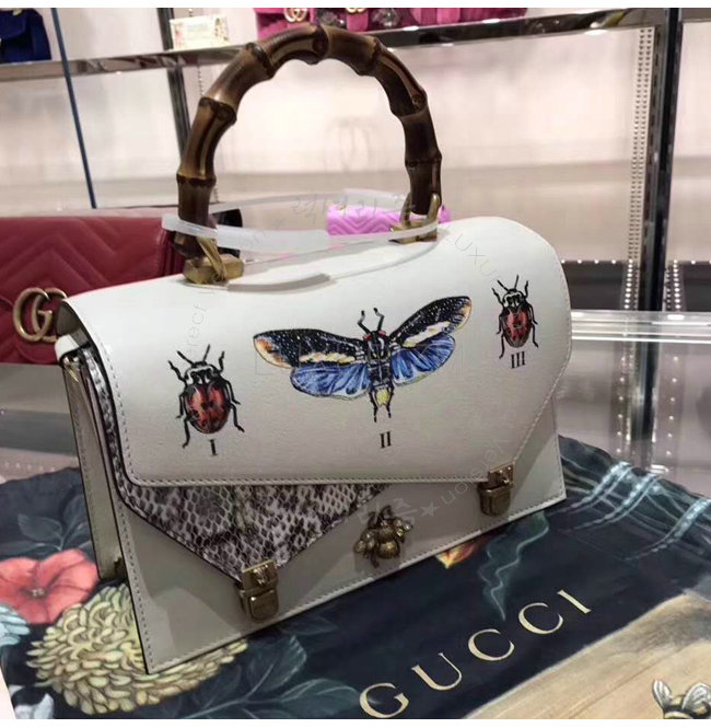 [스페셜오더]GUCCI-488715 9058 구찌 곤충 프린트 가죽 탑 핸들 백 화이트