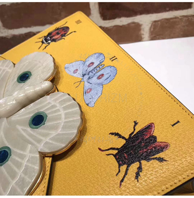 [스페셜오더]GUCCI-488691 7652 구찌 옐로우 가죽 나방 트리밍 탑 핸들 백