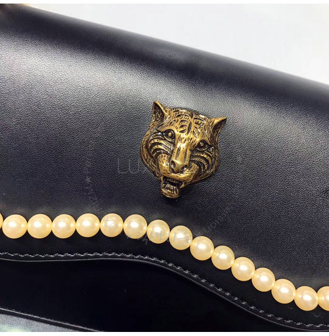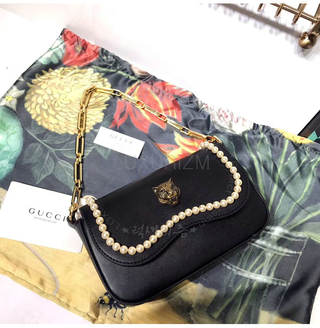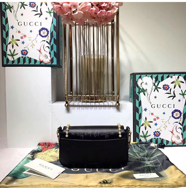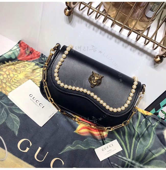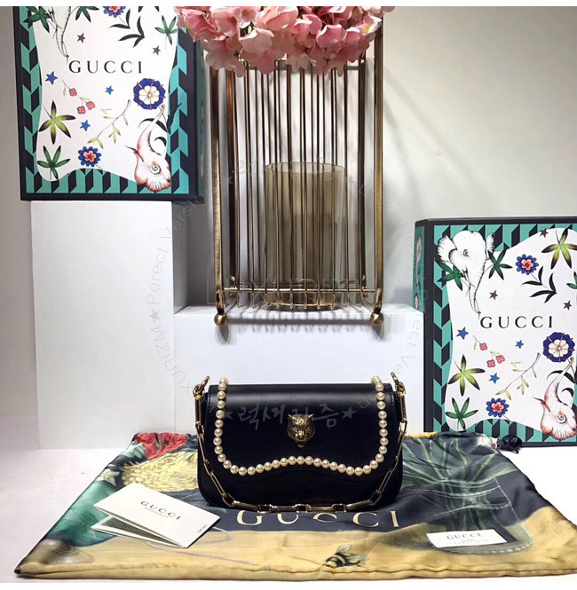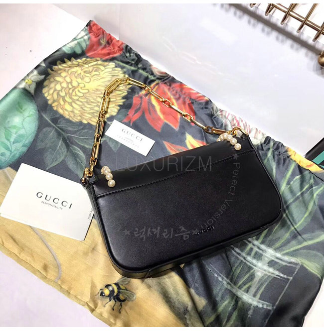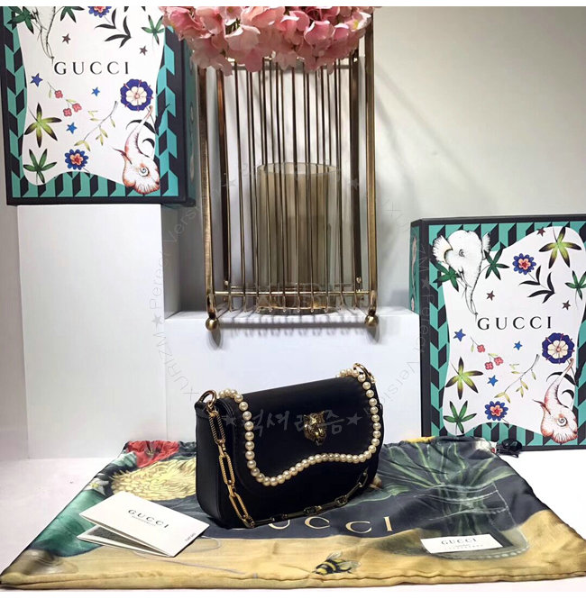 [스페셜오더]GUCCI-476804 1000 구찌 블랙 가죽 엠벨리쉬 진주 스터드 토트 백