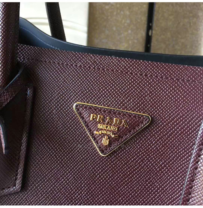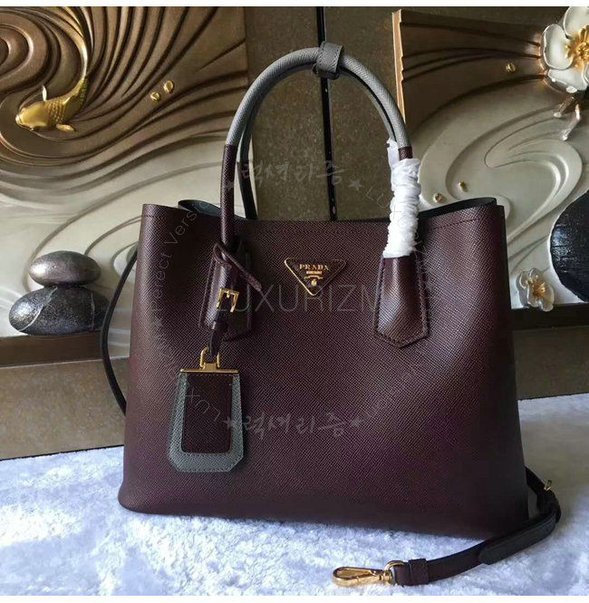 [스페셜오더]PRADA-1BG775 프라다 사피아노 더블 가죽 핸들 토트백 레드브라운