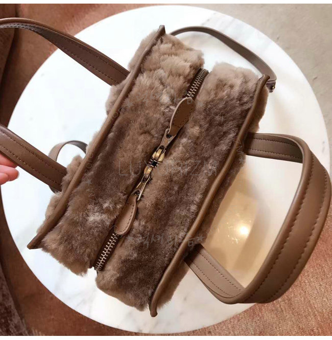 부드러운 양가죽 및 시어링 스몰 사이즈 쇼핑백 길이 조절 및 탈부착 가능한 숄더 스트랩