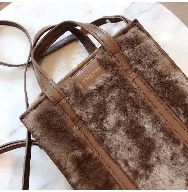 [스페셜오더]BALENCIAGA-452458 발렌시아가 시어링 베이지 바자 스몰 쇼퍼 백