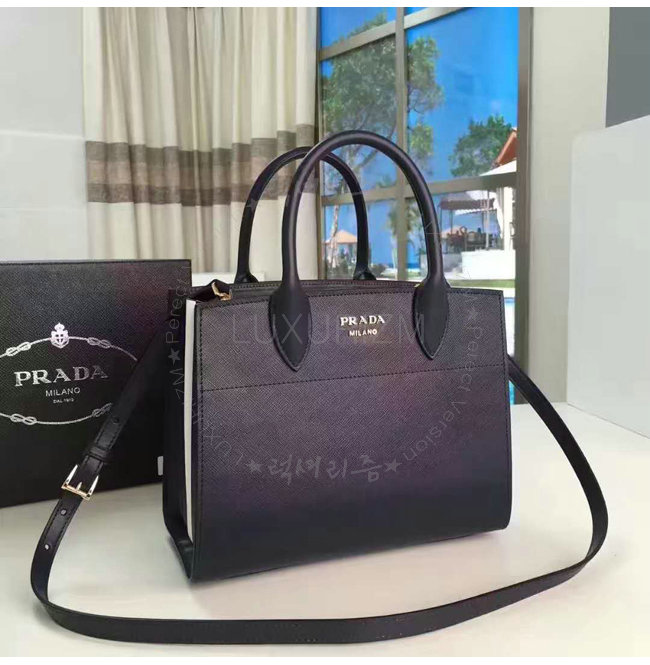 [스페셜오더]PRADA-1BA049 프라다 사피아노 가죽 블랙 비블리오텍 토트 백