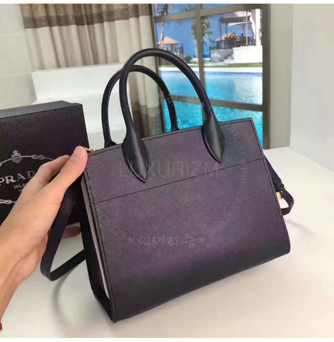 프라다 비블리오텍 사피아노 가죽 가방 더블 가죽 핸들 탈부착이 가능한