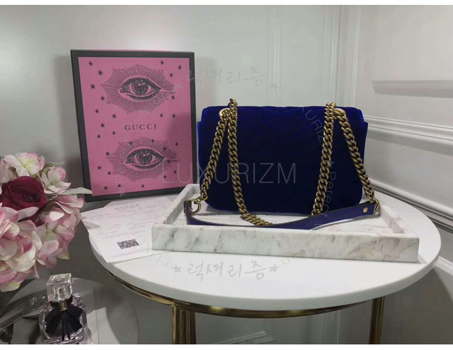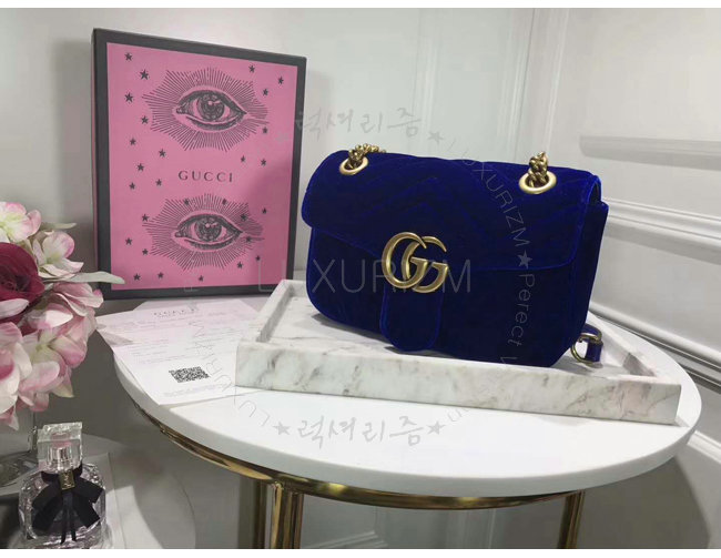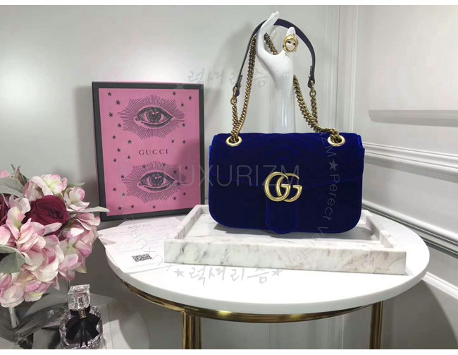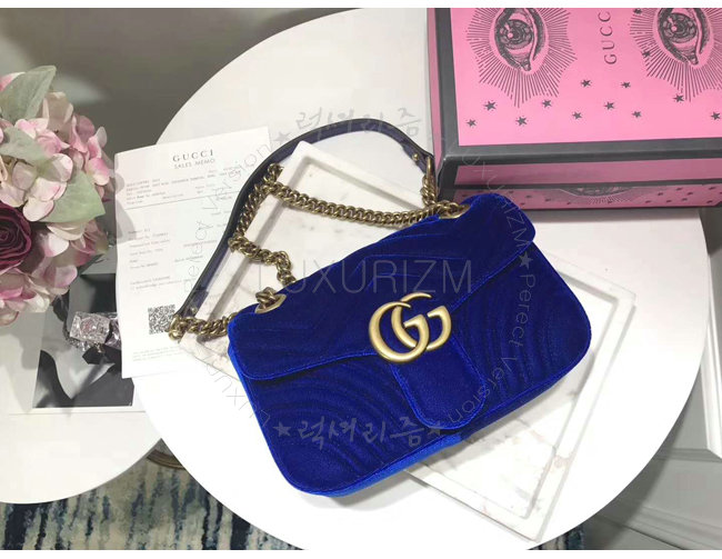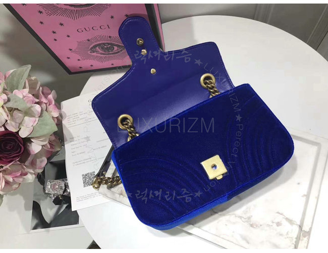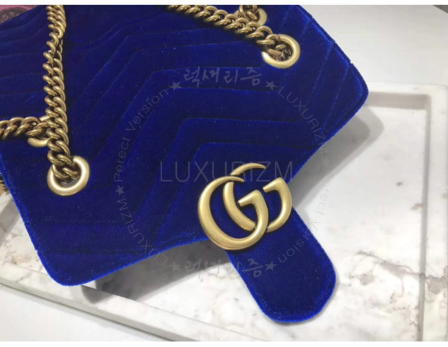 [스페셜오더]GUCCI-446744 4511 구찌 GG Marmont 마틀라세 미니 코발트 블루 벨벳 숄더백
