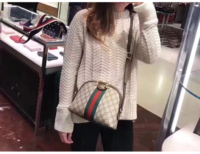 빈티지 스타일을 연상 시키는 돔 모양 숄더 백. Web 스트라이프 디테일 인레이의 GG
