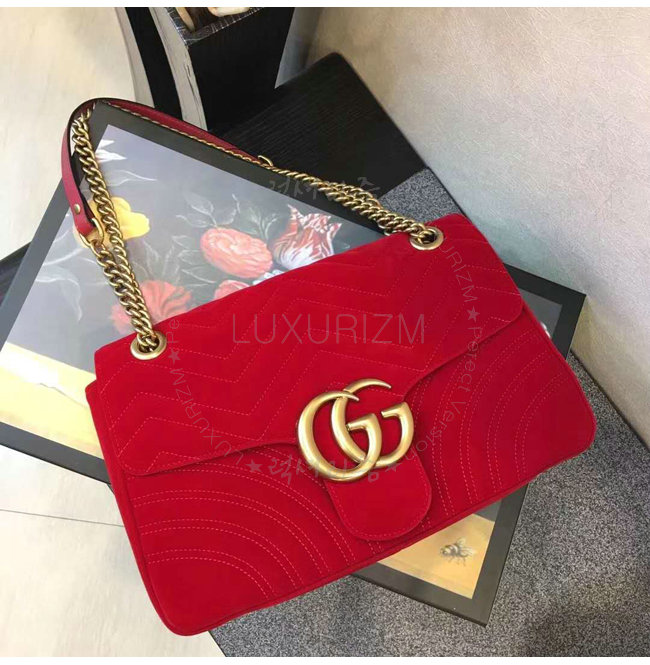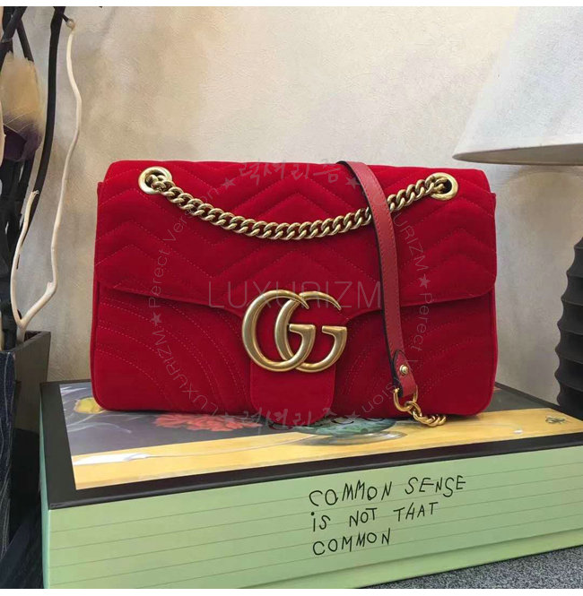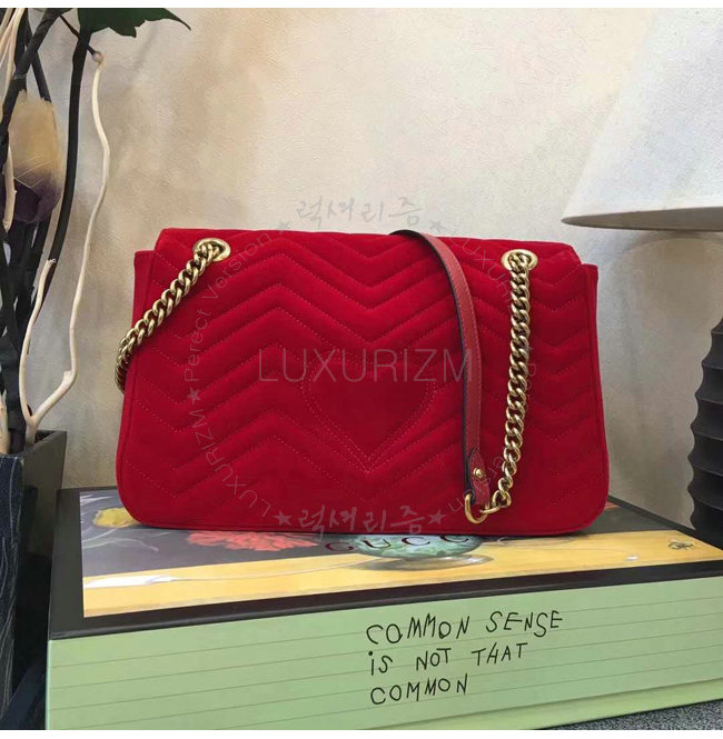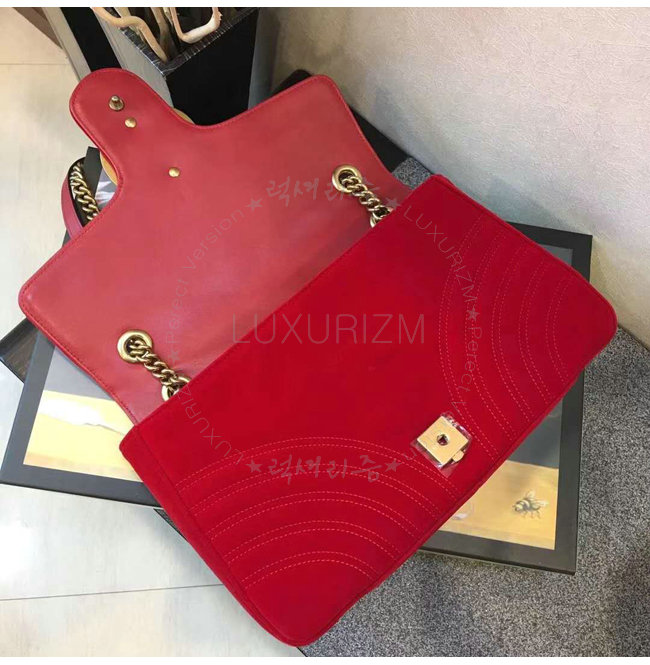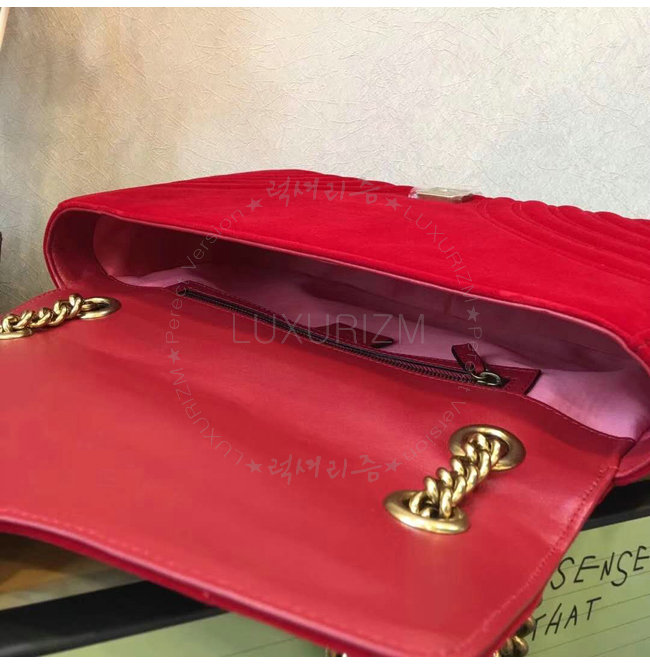 [스페셜오더]GUCCI-443496 6433 구찌 GG Marmont 레드 벨벳 미디엄 숄더백