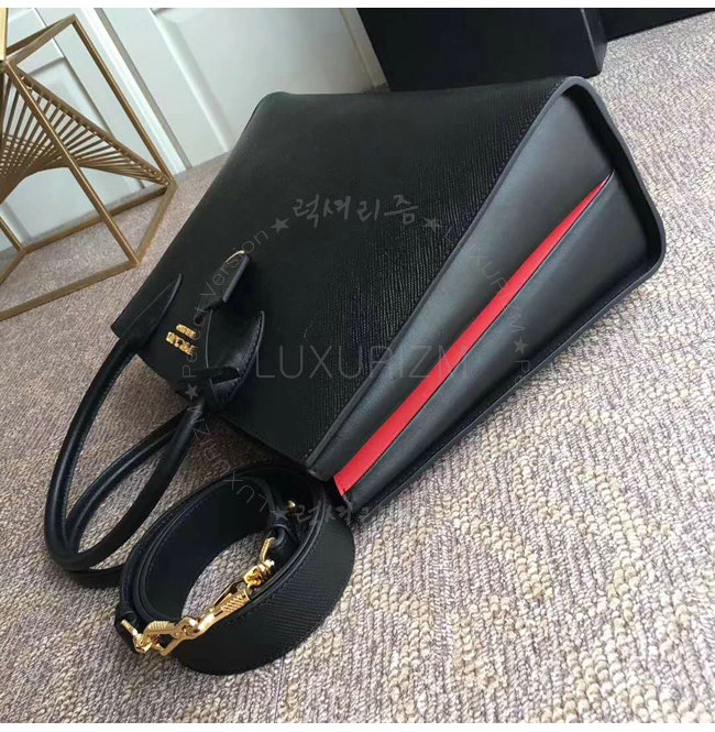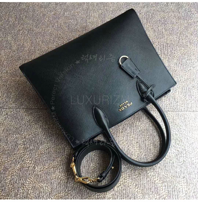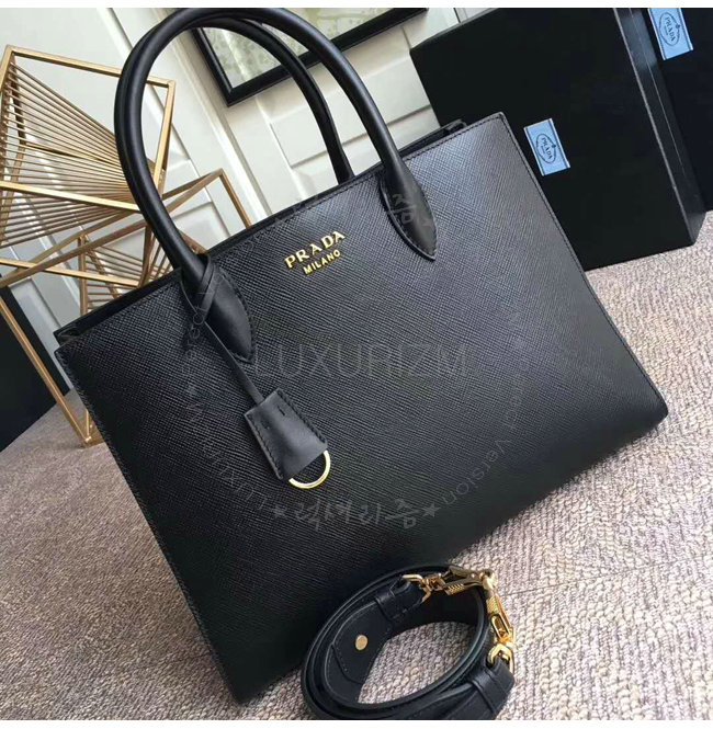 [스페셜오더]PRADA-1BA153 프라다 블랙 사피아노 가죽 라지 비블리오텍 토트백