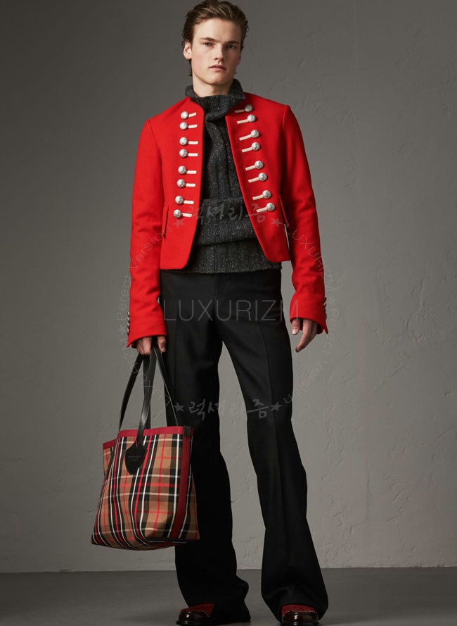 수작업으로 마감칠된 테두리 스트랩 탭의 버버리 엠보싱 로고.