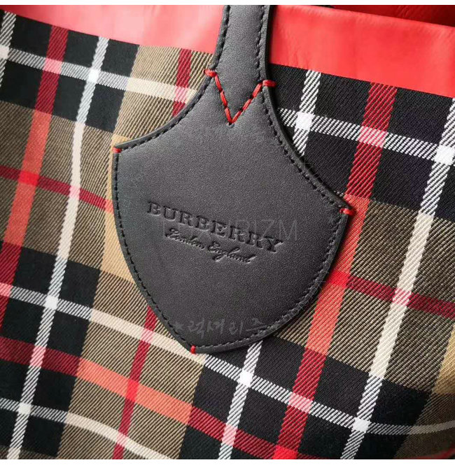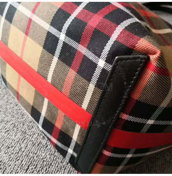 BURBERRY-40700561 버버리 미디엄 자이언트 타탄 코튼 캐러멜 플랙스 옐로 리버시블 토트