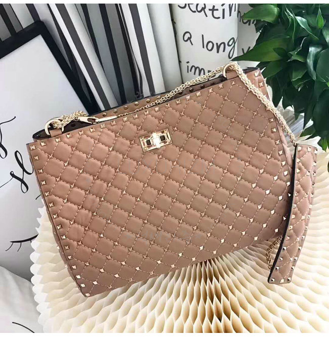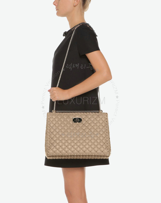부드러운 양가죽 소재의 Valentino Garavani락스터드 스파이크 토트백.퀼팅 및 마이크로