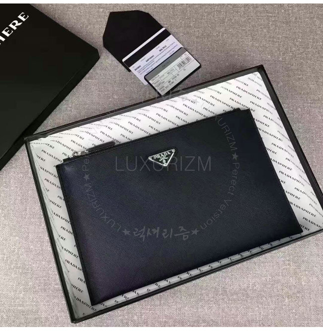 [스페셜오더]PRADA-2NG005 프라다 사피아노 가죽 트라이앵글 로고 트래블 키트 클러치 블랙