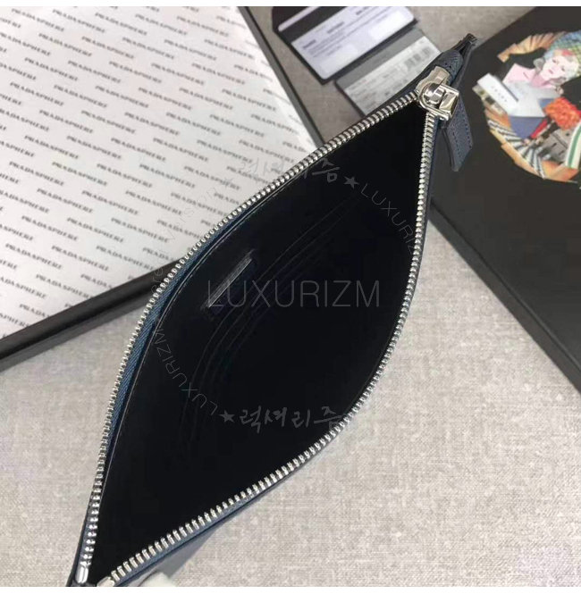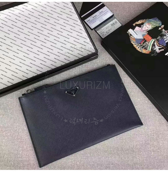 [스페셜오더]PRADA-2NG005 프라다 사피아노 가죽 트라이앵글 로고 트래블 키트 네이비 클러치