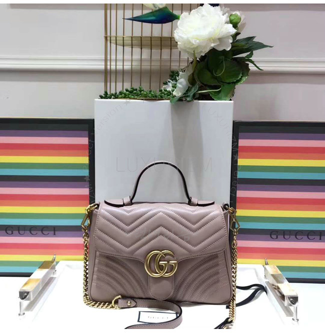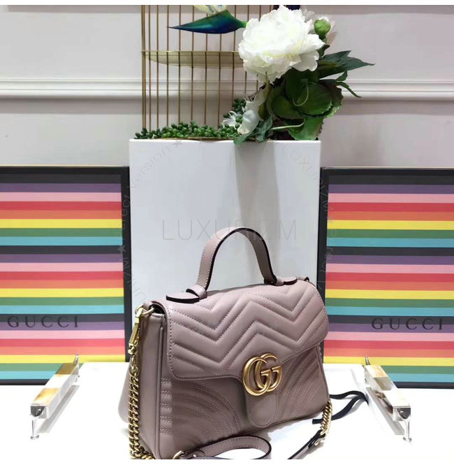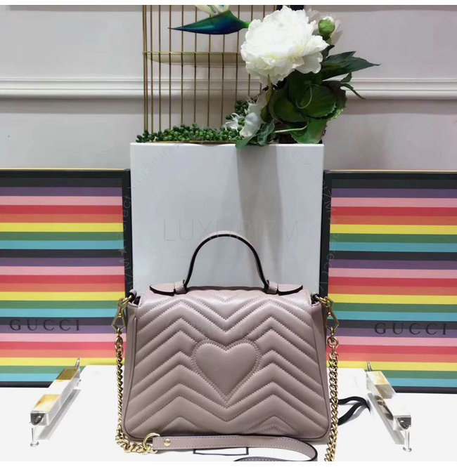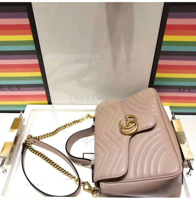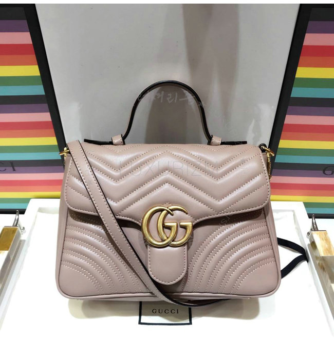 [스페셜오더]GUCCI-498110 5729 구찌 GG Marmont 누드 마틀라세 가죽 탑 핸들 백
