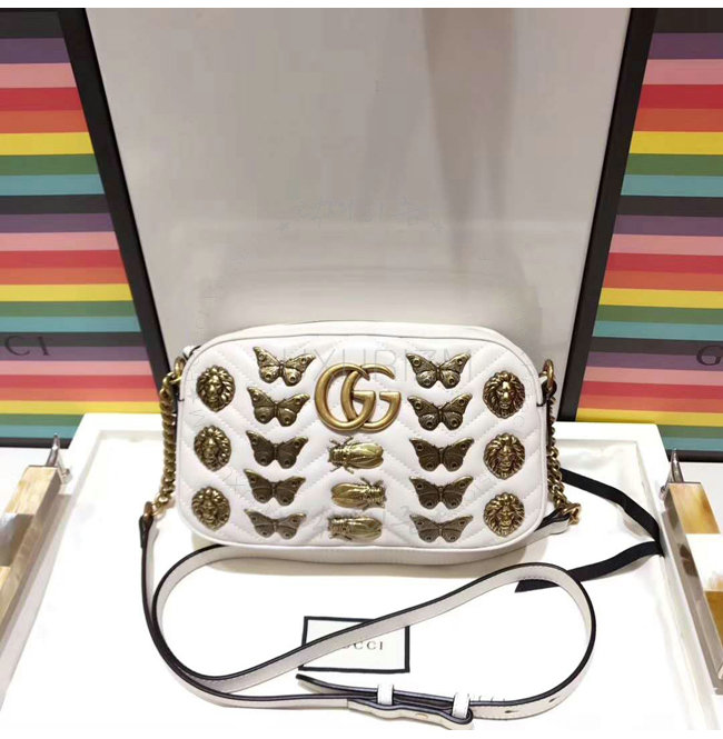 [스페셜오더]GUCCI-447632 8605 구찌 GG Marmont 애니멀 스터드 화이트 숄더 백