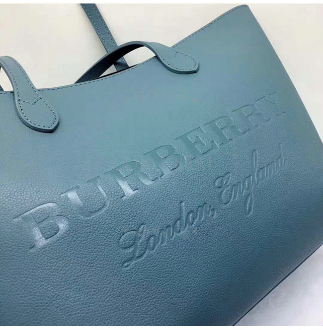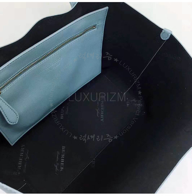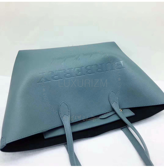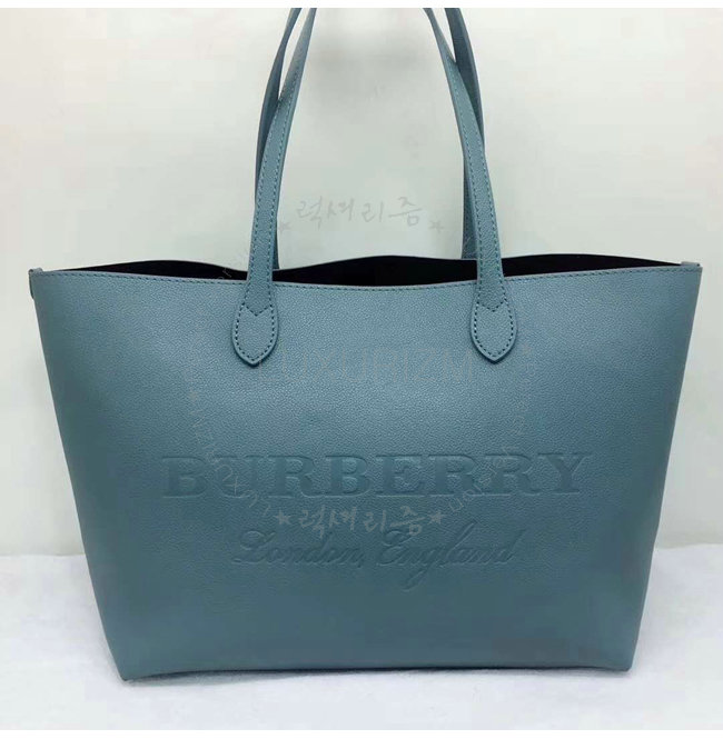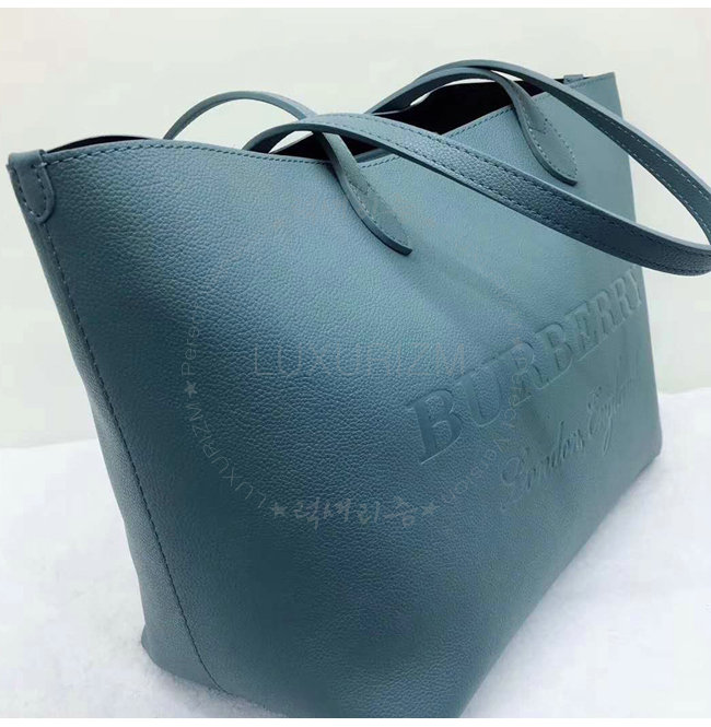 [스페셜오더]BURBERRY-40600961 버버리 송아지 가죽 더스티 틸 블루 라지 엠보싱 토트 백