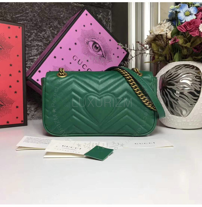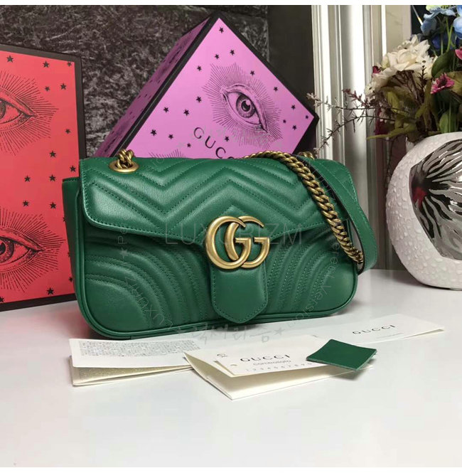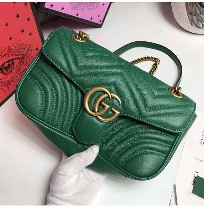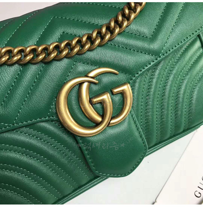 [스페셜오더]GUCCI-443497 3120 구찌 GG Marmont 그린 마틀라세 가죽 숄더 백