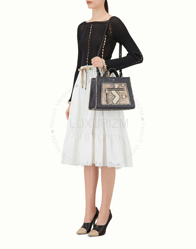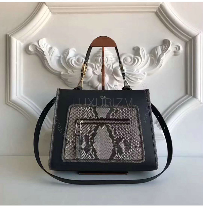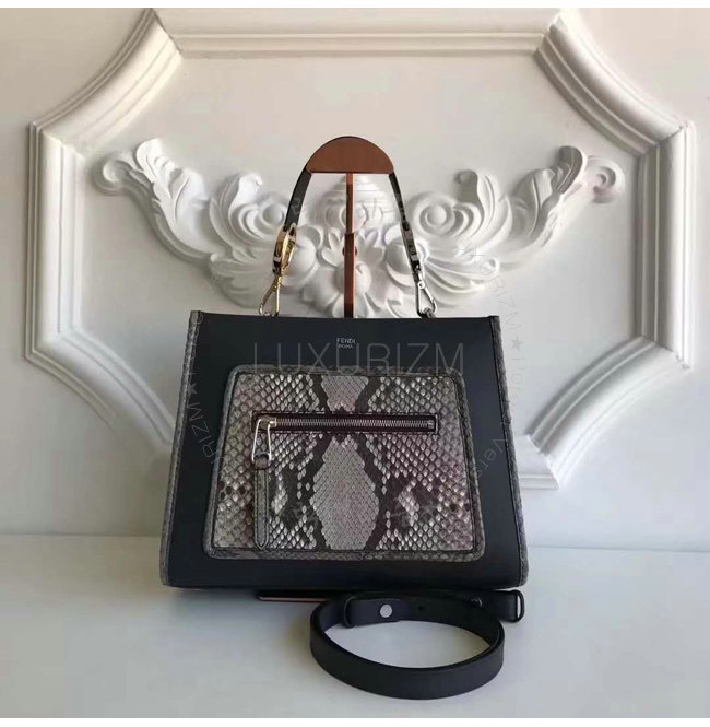 [스페셜오더]FENDI-8BH344 펜디 송아지 가죽 스네이크 스킨 트리밍 블랙 스몰 런어웨이 토트 백