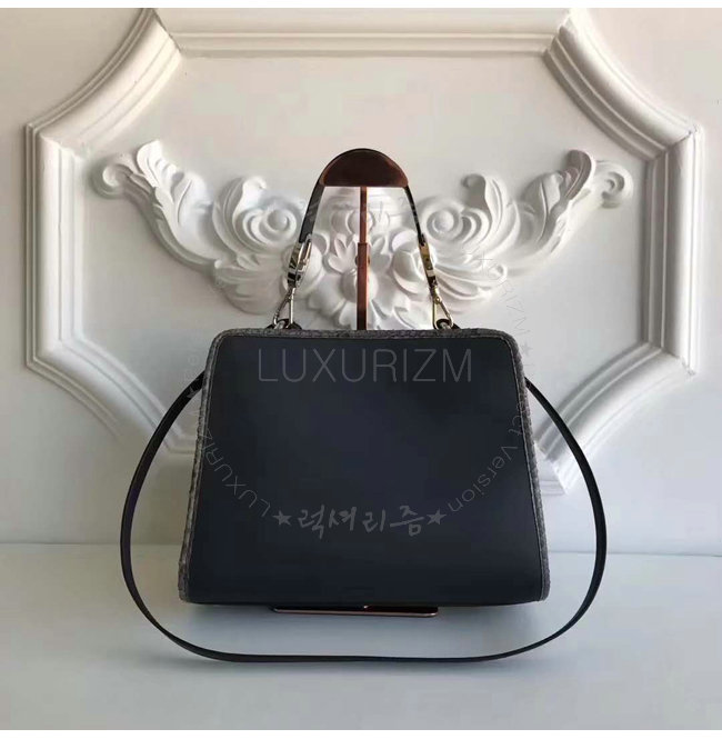 #펜디가방쇼핑몰 펜디신상쇼핑몰 홍콩명품가방쇼핑몰 럭셔리즘 [스페셜오더]FENDI-8BH344 펜디 송아지 가죽 스네이크 스킨 트리밍 블랙 스몰 런어웨이 토트 백