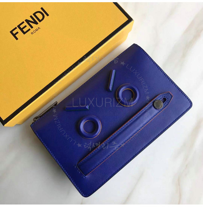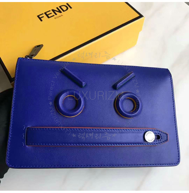 [스페셜오더]FENDI-7VA350 펜디 송아지 가죽 애니모티콘 모티프 디테일 블루 클러치 백