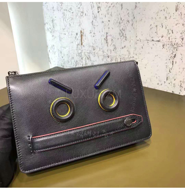 [스페셜오더]FENDI-7VA350 펜디 송아지 가죽 애니모티콘 모티프 디테일 블랙 클러치 백