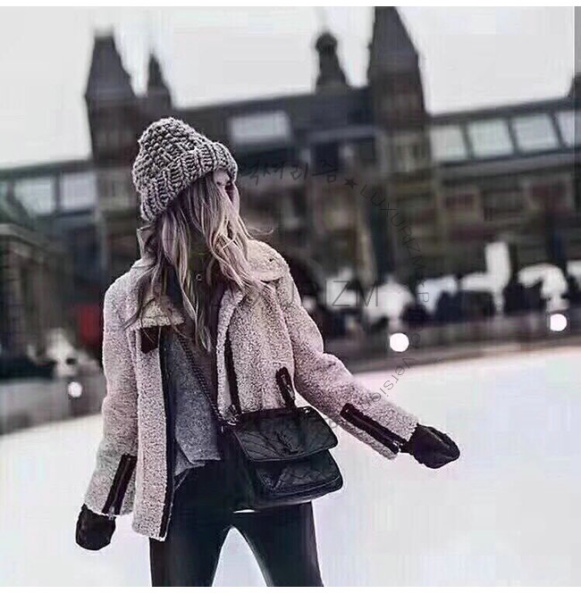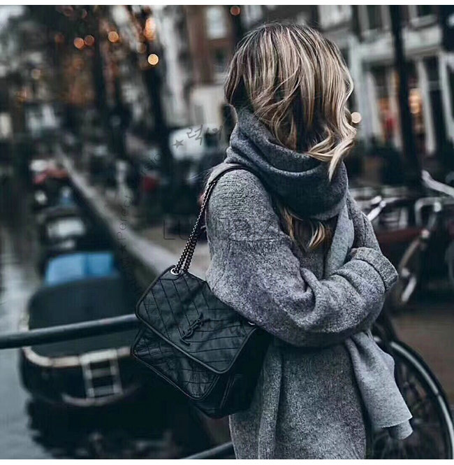 [스페셜오더]SAINT LAURENT-498894 생 로랑 송아지 가죽 크링클드 퀼티드 그레이 미디움 니키 체인 백