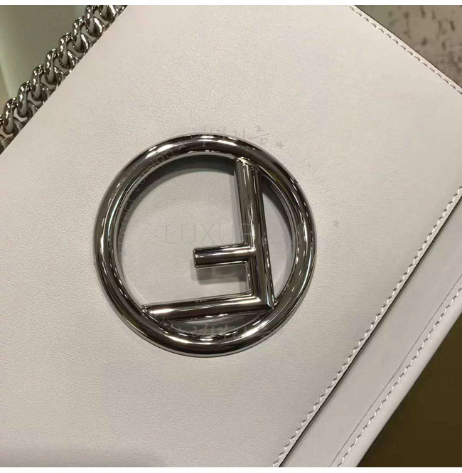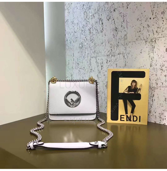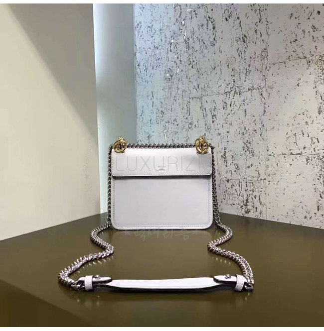 플랩과 새로운 펜디 로고가 장식된 미니 백. 마그네틱 잠금장치. 내부 포켓. 롱 체인 숄더