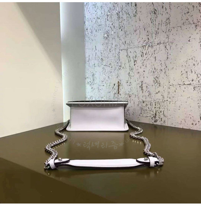 스트랩으로 크로스백 또는 핸드백 겸용. 그레이 컬러의 가죽 소재. 팔라듐 피니싱 메탈 장식.