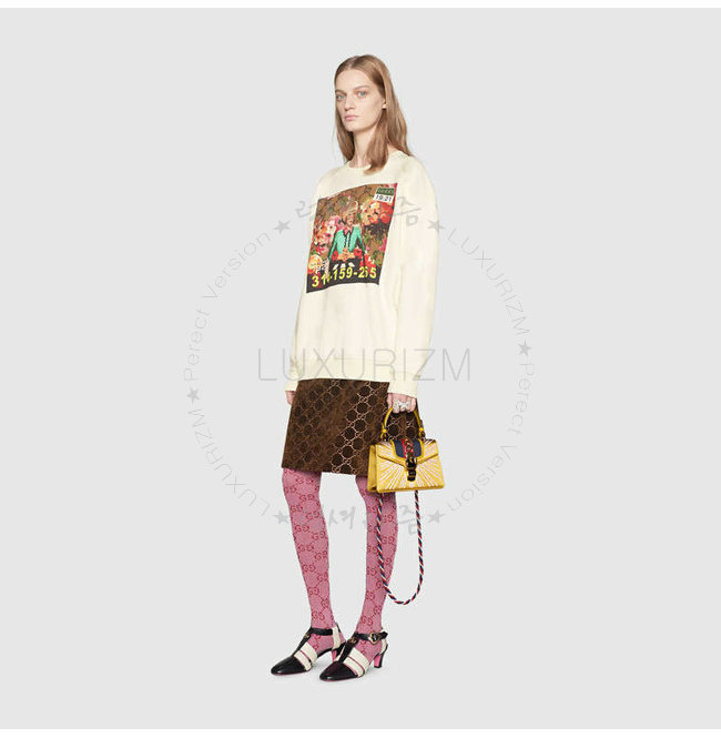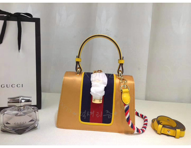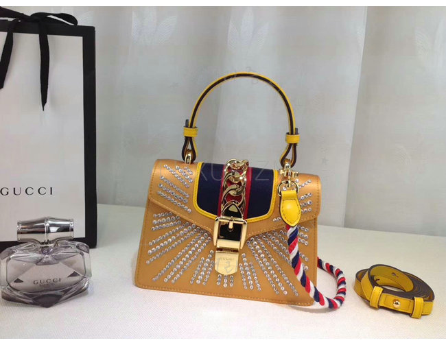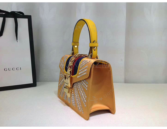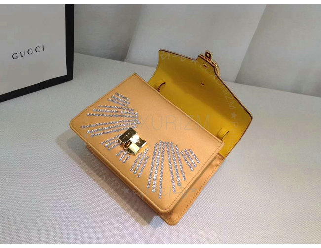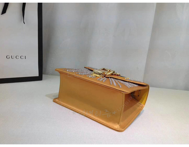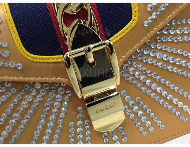 [스페셜오더]GUCCI-470270 7289 구찌 Sylvie 골드 가죽 크리스탈 장식 미니 백