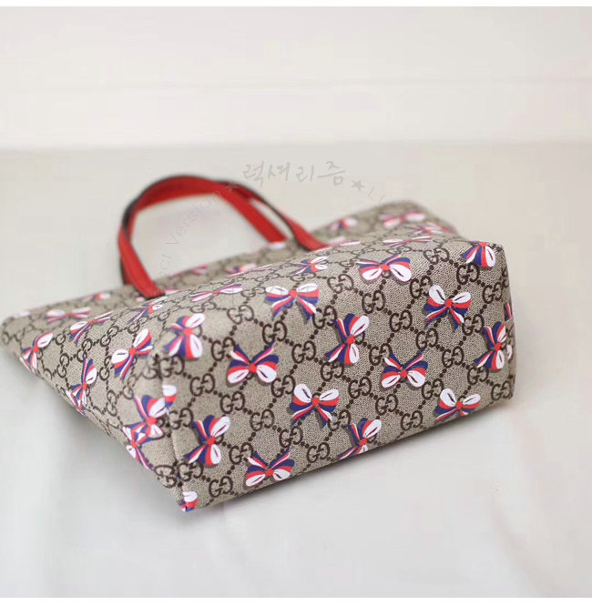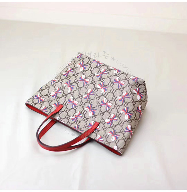 GUCCI-410812 8339 구찌 칠드런 GG수프림 캔버스 실비 보우 토트 백