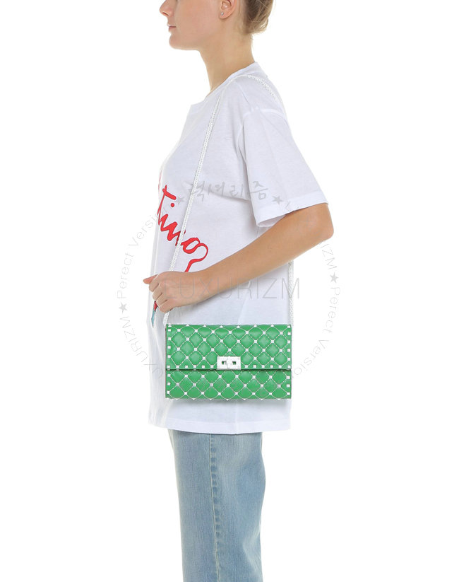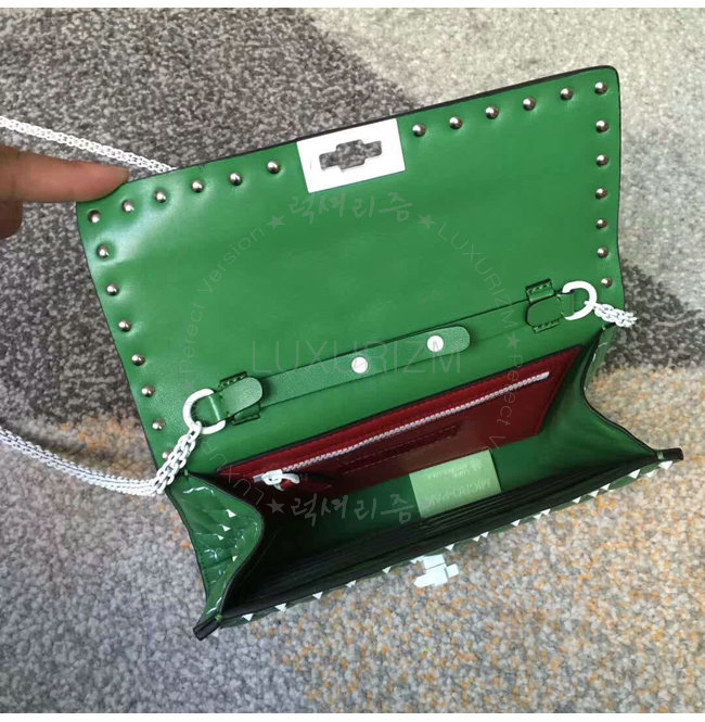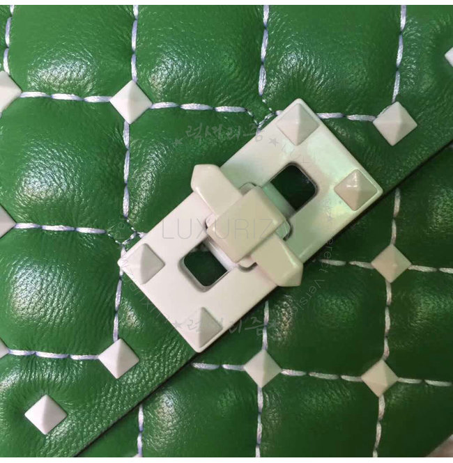 [스페셜오더]VALENTINO-PW2B0137 발렌티노 송아지 가죽 프리 락스터드 스파이크 그린 체인 백