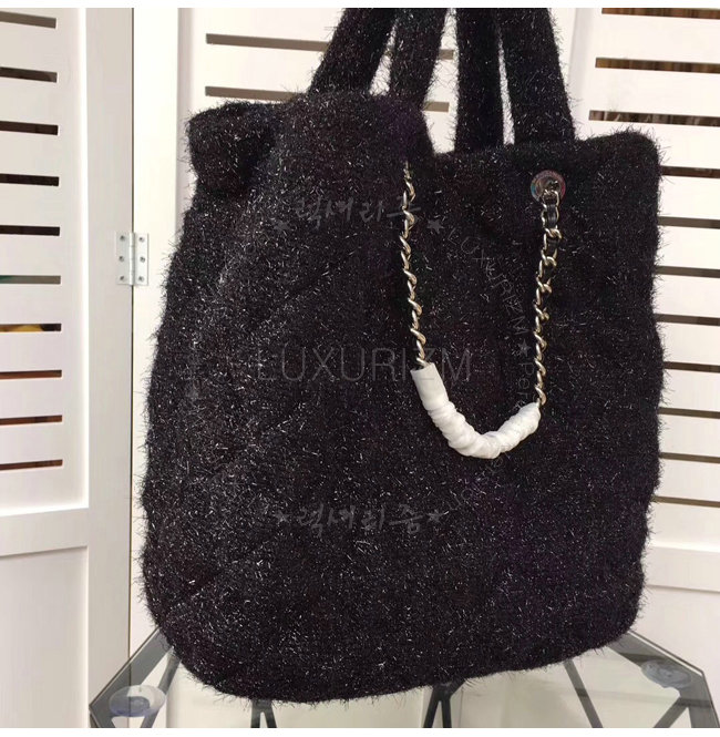 [스페셜오더]CHANEL-A91998 샤넬 니트 멜탈릭 램스킨 실버 메탈 블랙 라지 토트 백