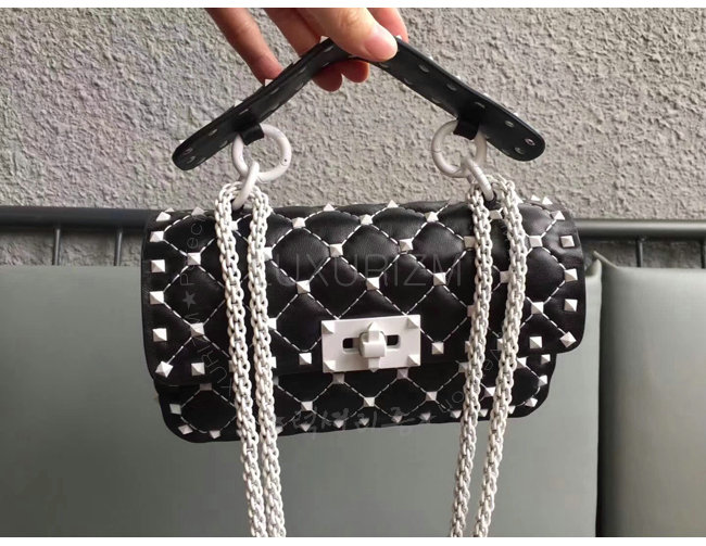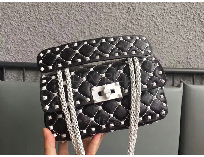 [스페셜오더]VALENTINO-PW2B0123 발렌티노 송아지 가죽 블랙 스몰 프리 락스터드 스파이크 체인 백