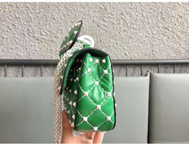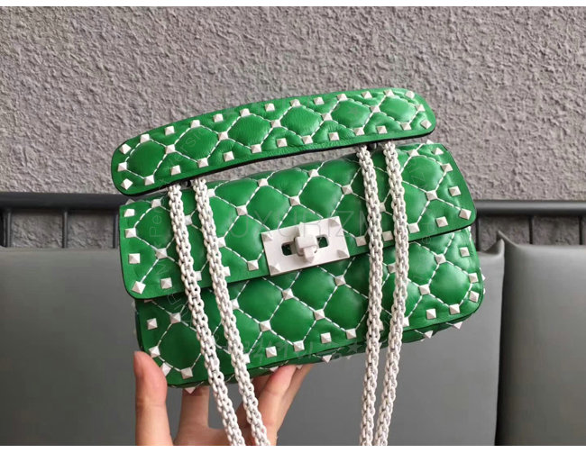 [스페셜오더]VALENTINO-PW2B0123 발렌티노 송아지 가죽 그린 스몰 프리 락스터드 스파이크 체인 백