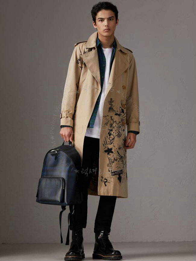 [스페셜오더]BURBERRY-40315661 버버리 가죽 트리밍 네이비 런던 체크 백팩