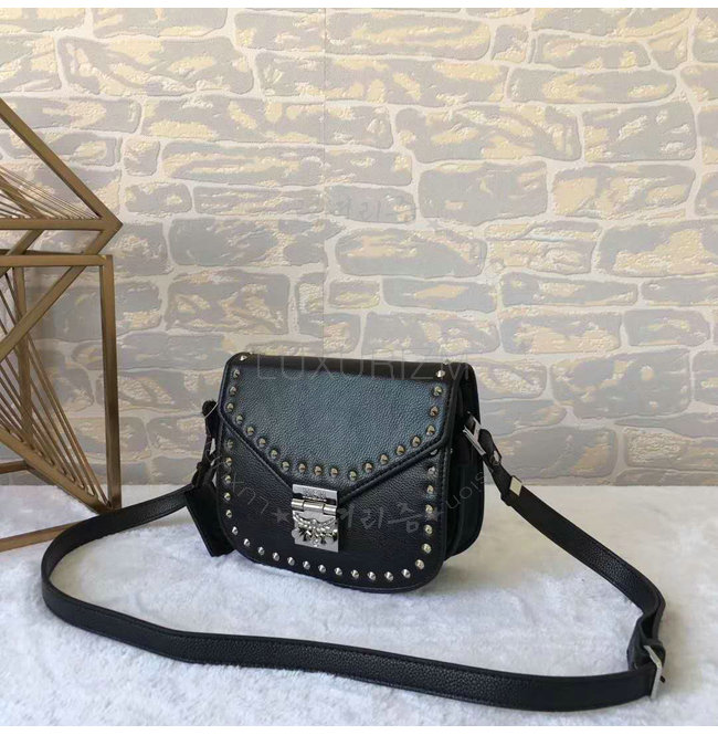 MCM-MWS7AP 엠씨엠 소가죽 블랙 페트리샤 스터드 파크에비뉴 숄더 백