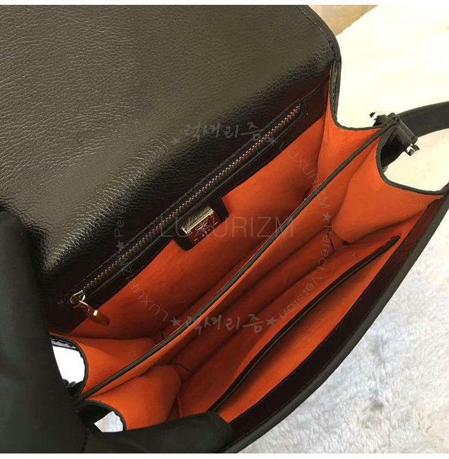 조절가능한 레더스트랩 앞면 플랩에 월계수 모양의 푸쉬락장식 내부 2개의 수납공간