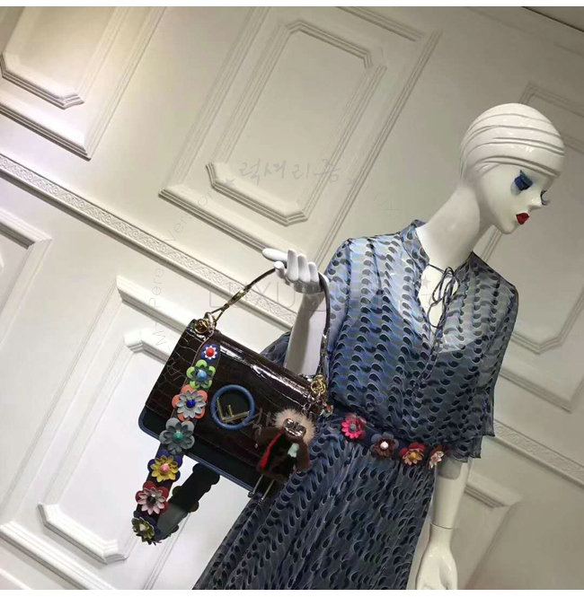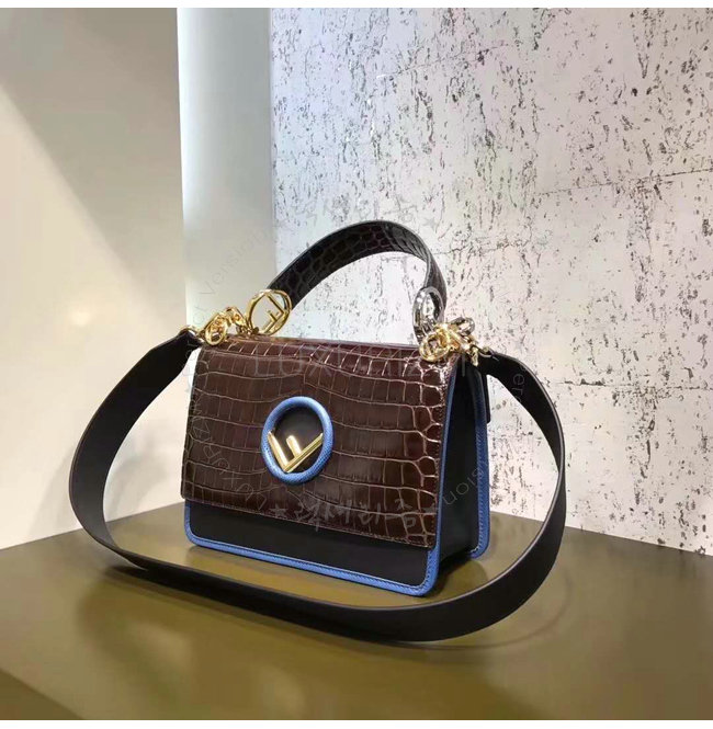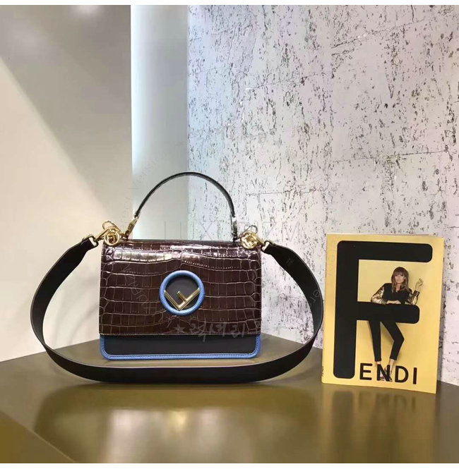 [스페셜오더]FENDI-8BT284 펜디 악어무늬 가죽 더블 F 브라운 칸 아이 백