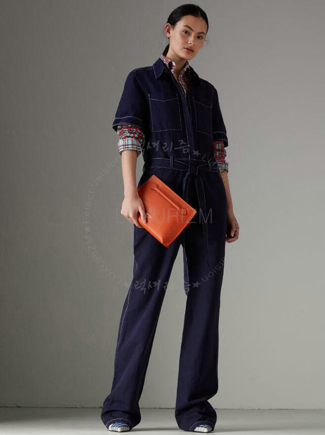 지퍼 여밈 앞면의 버버리 엠보싱 로고.