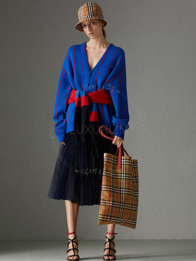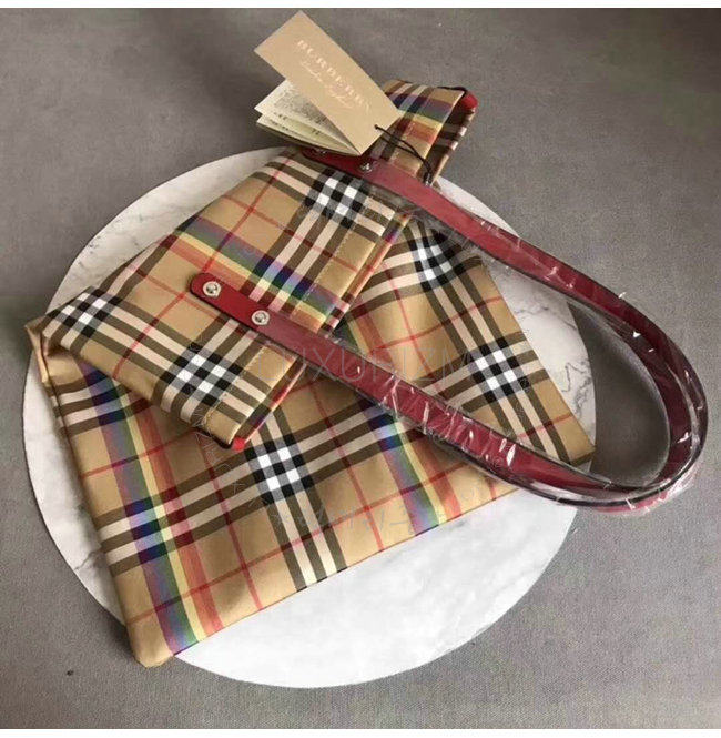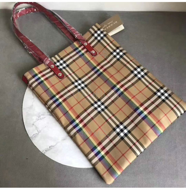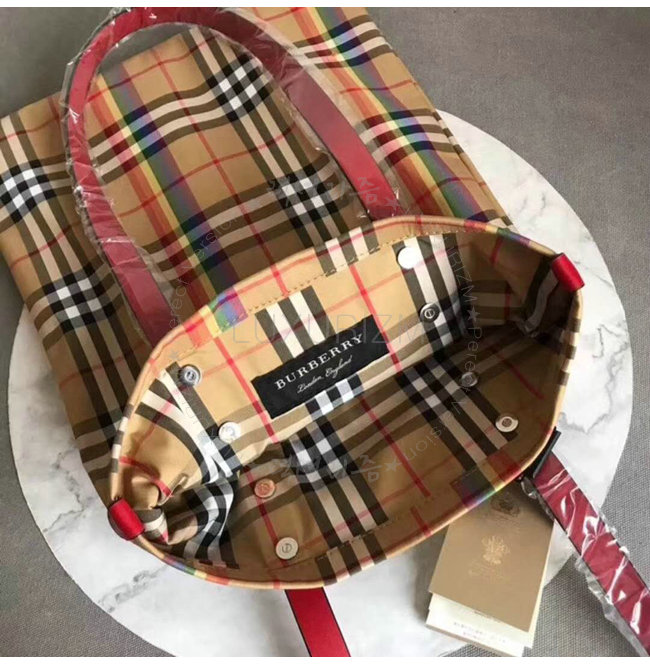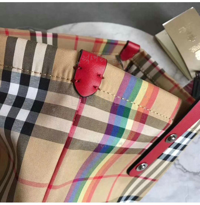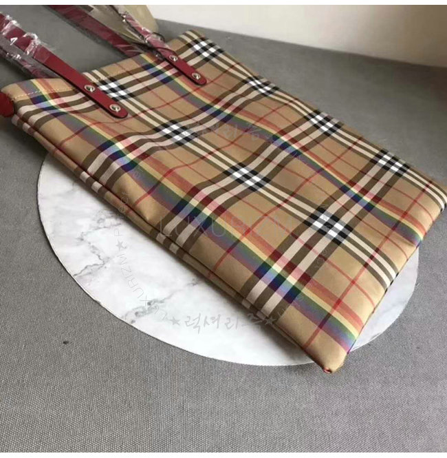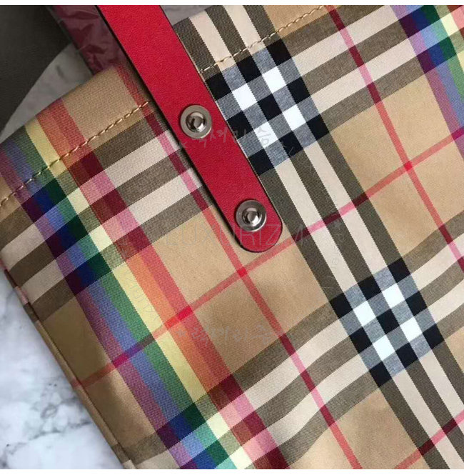 BURBERRY-40772131 버버리 라지 레인보우 빈티지 체크 레드 쇼퍼 백