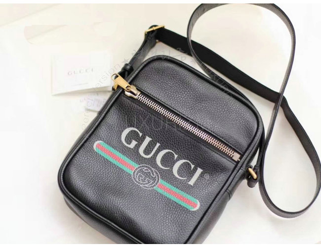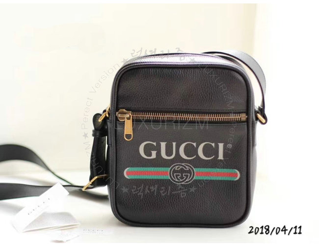 [스페셜오더]GUCCI-523591 8163 구찌 블랙 가죽 구찌 프린트 메신저 백