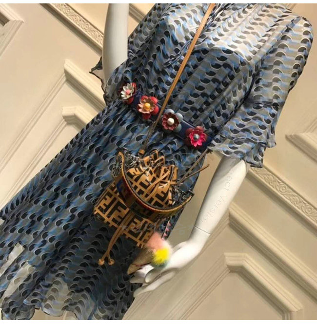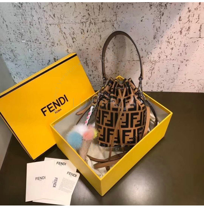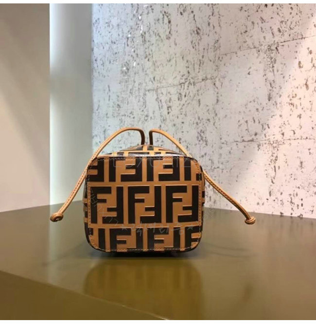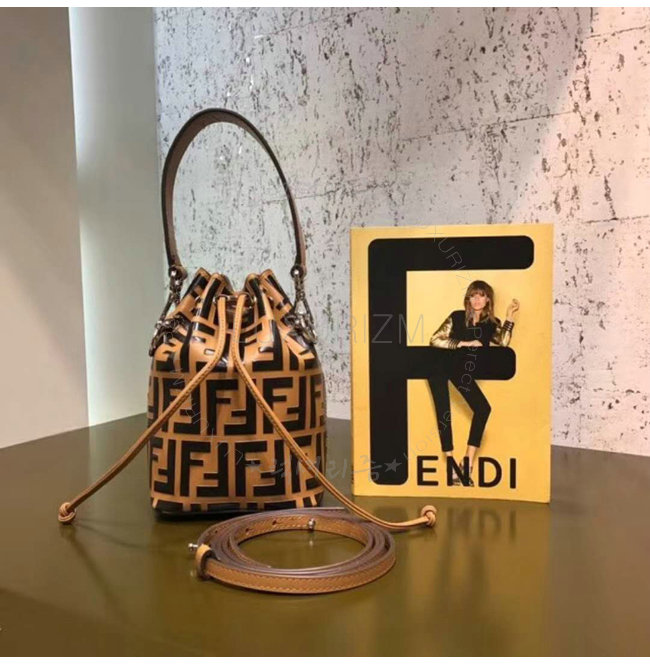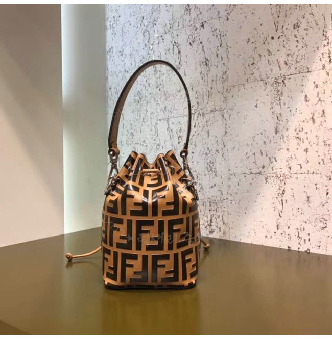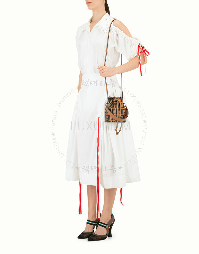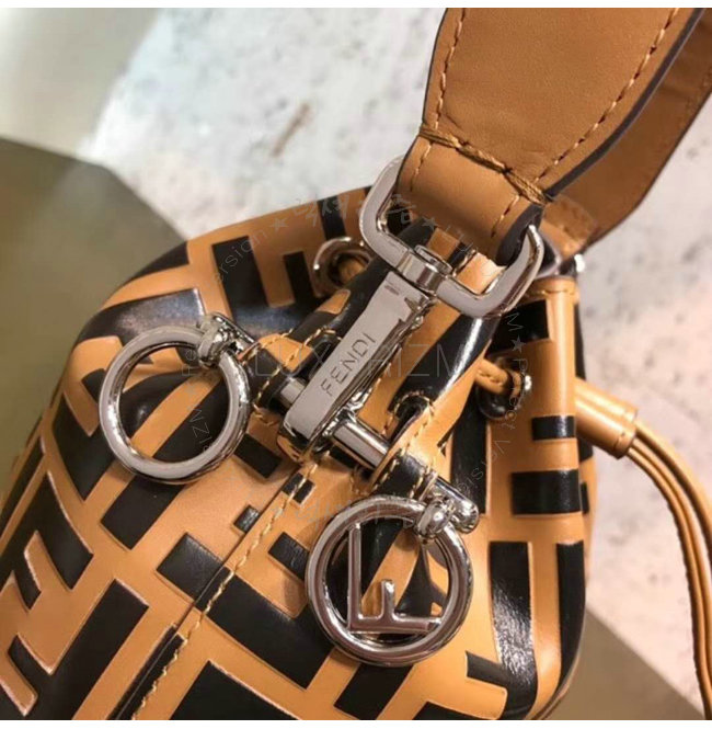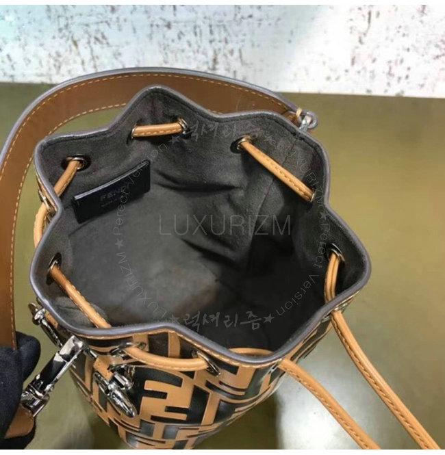 스몰 몽 트레죠르 버킷 백. 드로우스트링 잠금장치와 F is Fendi 로고 형태의 메탈 장식. 롱 길이