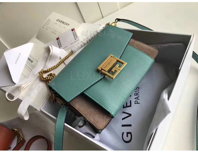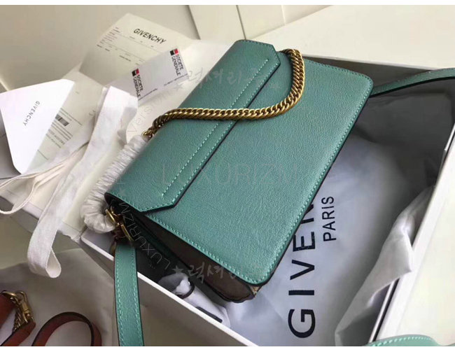 [스페셜오더]GIVENCHY-BB501CB 지방시 카프스킨 아쿠아 GV3 스몰 숄더스트랩 플랩 백